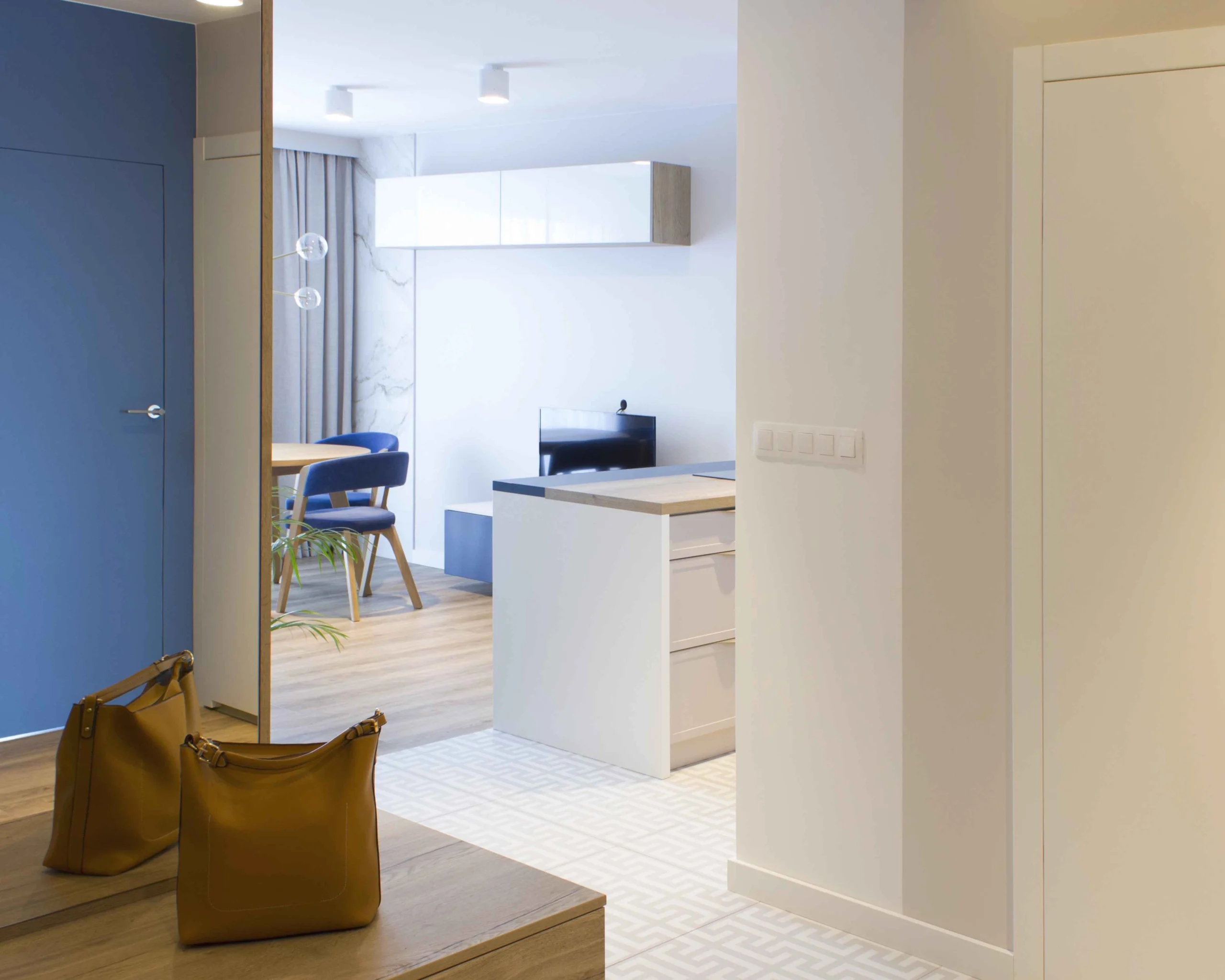 Kobiecy zew kolorów Mieszkanie zaprojektowane z myślą o kobiecej estetyce, odzwierciedlające elegancję w żywych kolorach i wzorach. Starannie dobrane akcenty nadają wnętrzu charakter, tworząc przestrzeń indywidualności właścicielki.